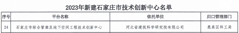 喜報:我院獲批“石家莊市綜合管廊及地下空間工程技術(shù)創(chuàng)新中心”
